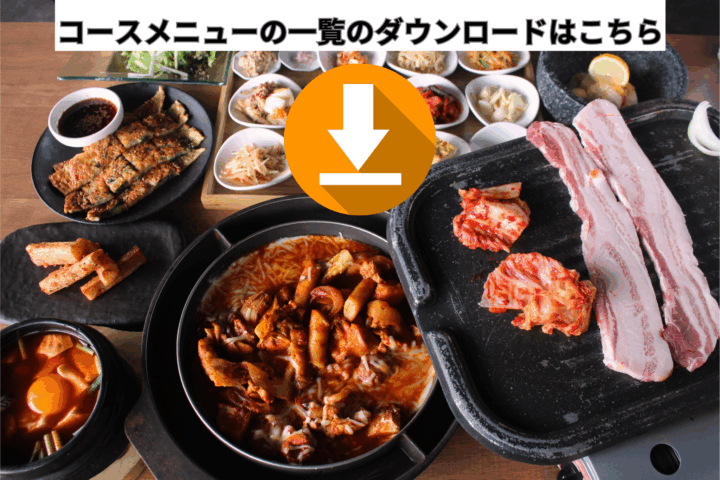 ●サムギョプサル、チーズタッカルビ、プテチゲのうちどれか1種類メインを選択。